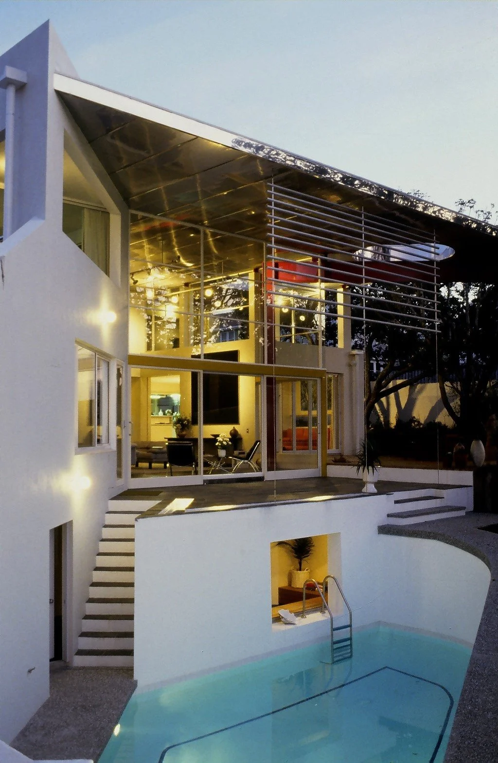 “It may be luxurious, eclectic, even glitzy, but there is no duplicity or deceit. Only an overriding confidence, clarity and openness of spirit…..a house whose airy opulence combines purity with luxury – cool surface, clean detailing and an abundance of pure, unadulterated space – in direct line of descent from Neutra’s Californian Health House from 1928.” - E.M. Farrelly in The Architectural Review, July 1987.
